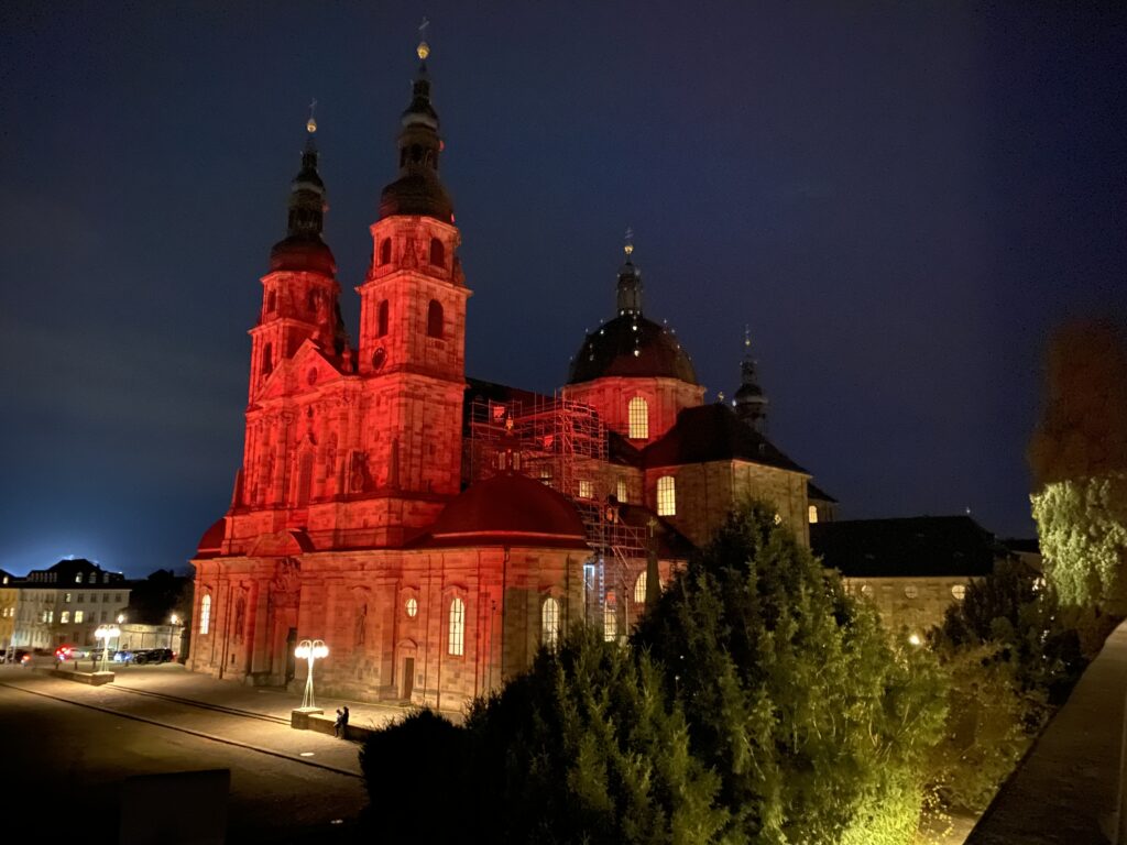 | Rote Beleuchtung, hl. Messe u. Anbetung – Basilika St. Lorenz, Kempten | Bayern | 87439 | Kempten |